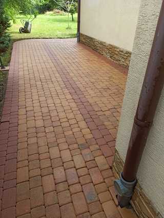 Tak silny strumień wody z powodzeniem zrywa z powierzchni kostki wszelkie zanieczyszczenia biologiczne (np. mech, trawę). Bardziej uporczywe zabrudzenia usuwamy przy użyciu podgrzewacza wody (mycie ciśnieniowe wodą o temperaturze 99°C). Z kolei plam oleju i rdzy pozbywamy się przy zastosowaniu odpowiednio dobranych środków chemicznych.