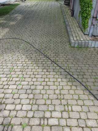 Czyszczenie kostki brukowej wykonujemy przy zastosowaniu wirującego strumienia wody o mocy do 500 barów.